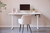 Den snygga bordsskivan i svart syntetfanér vilar på en stark stålram för ett lätt och modernt utseende som passar både i hemmakontoret och på arbetsplatsen. Ytan är slitstark, reptålig och lätt att rengöra, så ditt skrivbord kommer att behålla sitt snygga utseende i många år