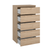 Byrån är tillverkad av material med en slitstark och lättrengjord yta som gör den tålig för daglig användning. De 5 rymliga lådorna ger gott om utrymme för kläder, sängkläder eller andra tillhörigheter så att du enkelt kan hålla ordning i ditt hem