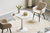 Rundt matbord med trumpetfot i marmorlook